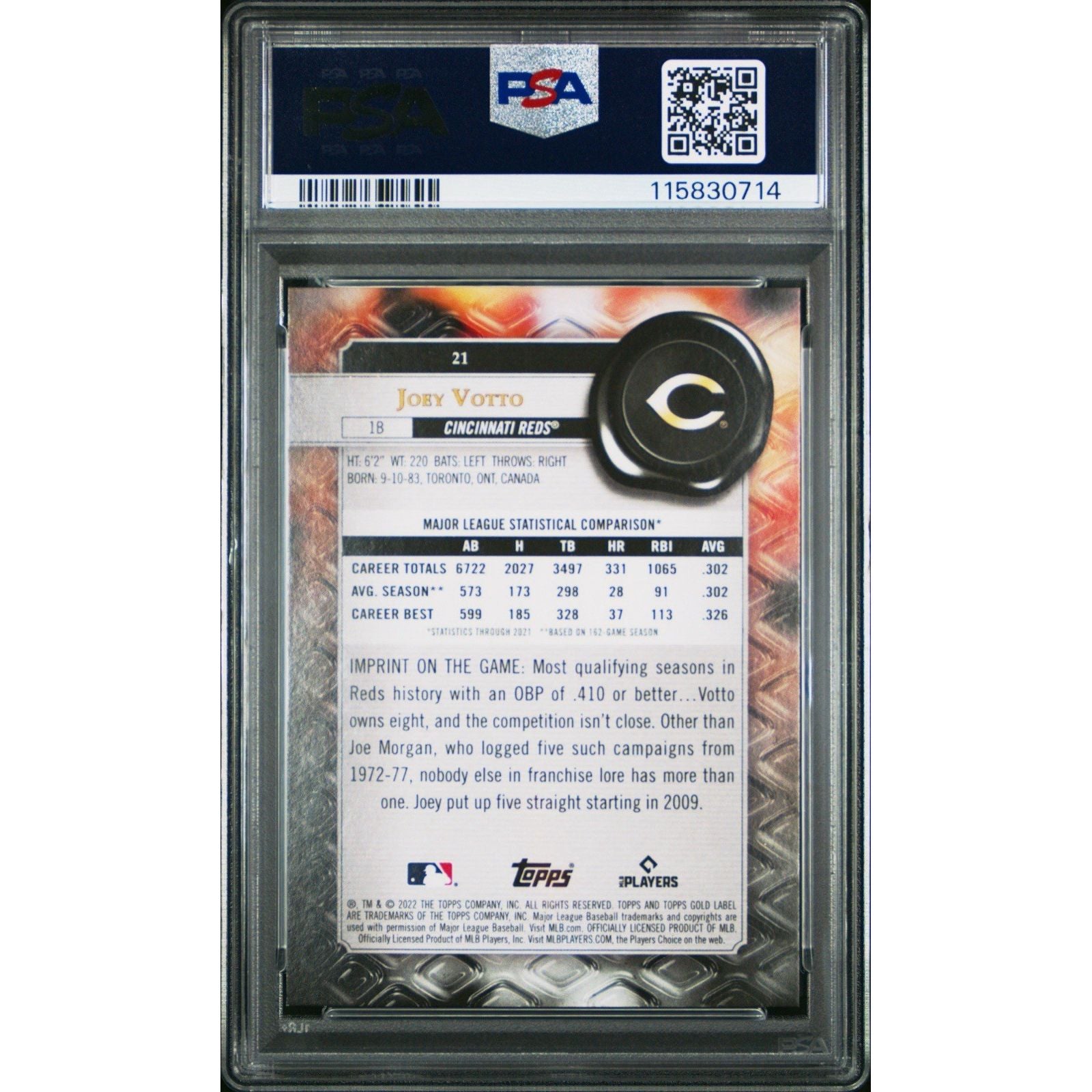 2022 Topps Gold Label #21 Joey Votto Class 2 Blue /99