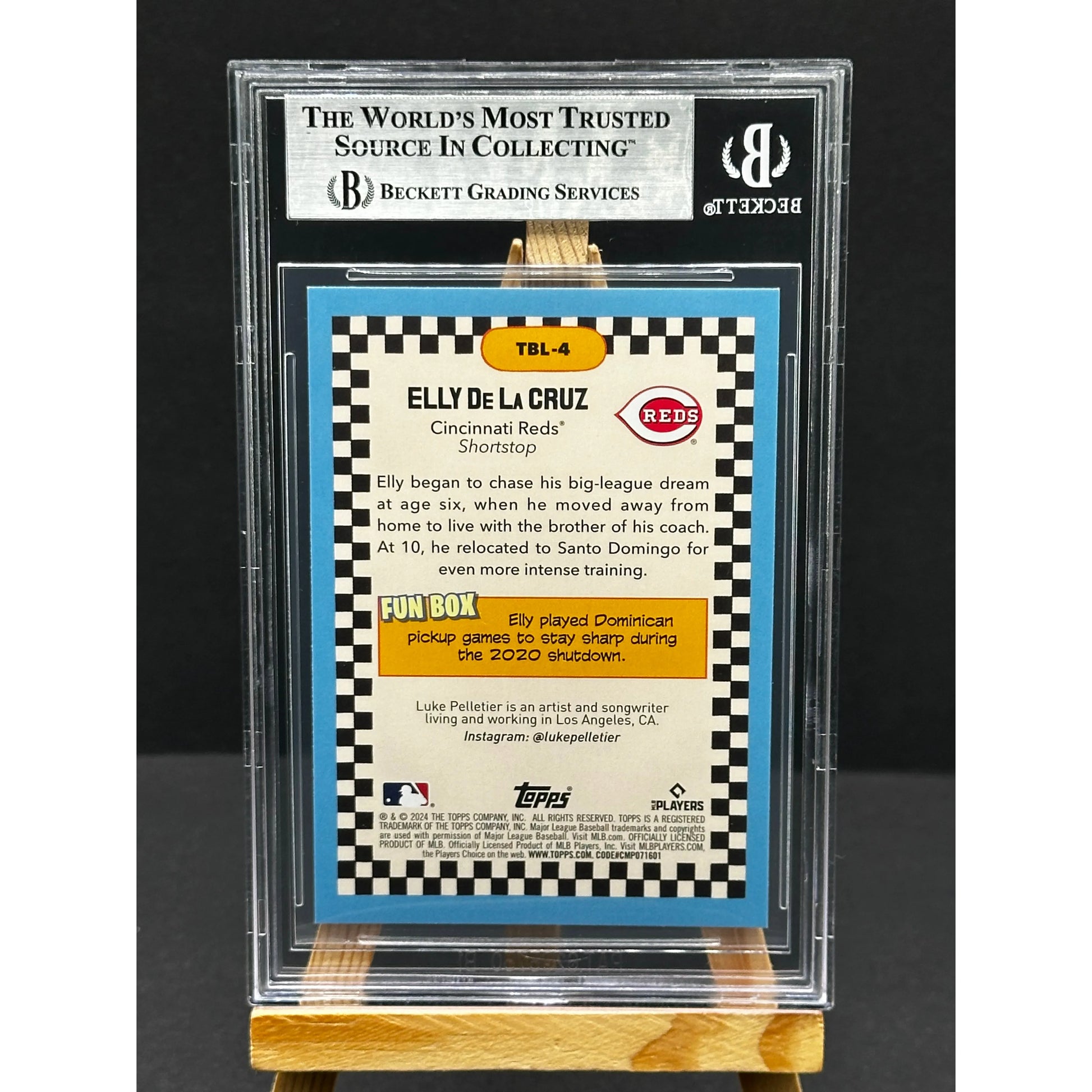 Beckett graded 2024 Topps Big League Baseball Elly De La Cruz Big Leaguer card in Mint 9 condition. Perfect for collectors and baseball fans!