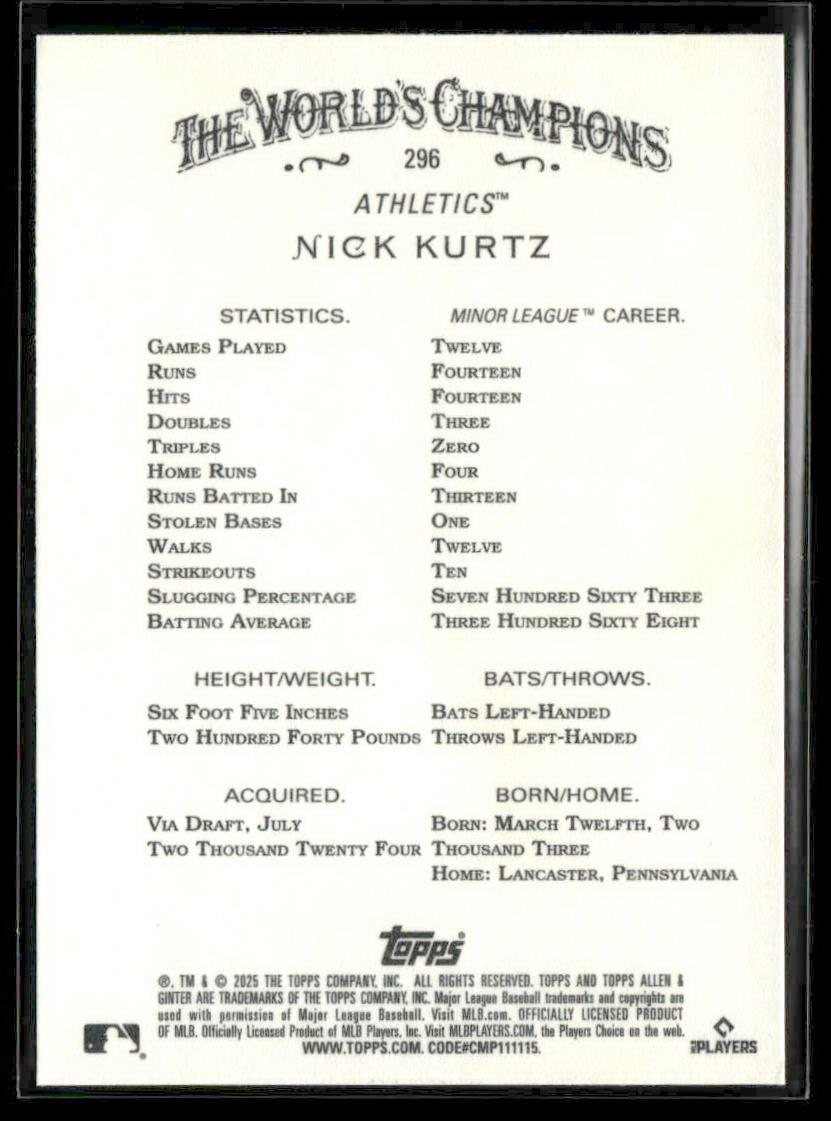 Chase your favorite players, minis, and inserts from the iconic Allen & Ginter set — now available as individual singles. Every card is sleeved, top-loaded, sleeved (again), and ships in NM–MT condition.